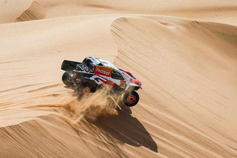 Al Attiyah manda en coches y Sanders en motos. Sigue la dupla Busi-Lafuente